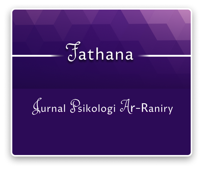 Fathana: Jurnal Psikologi AR-RANIRY is journal is a scientific journal in the field of psychology published by the Department of Psychology, State Islamic University Ar-Raniry, Banda Aceh, Indonesia. It is published biannually and publishes original paper from all fields of psychology in Indonesia and in English language.